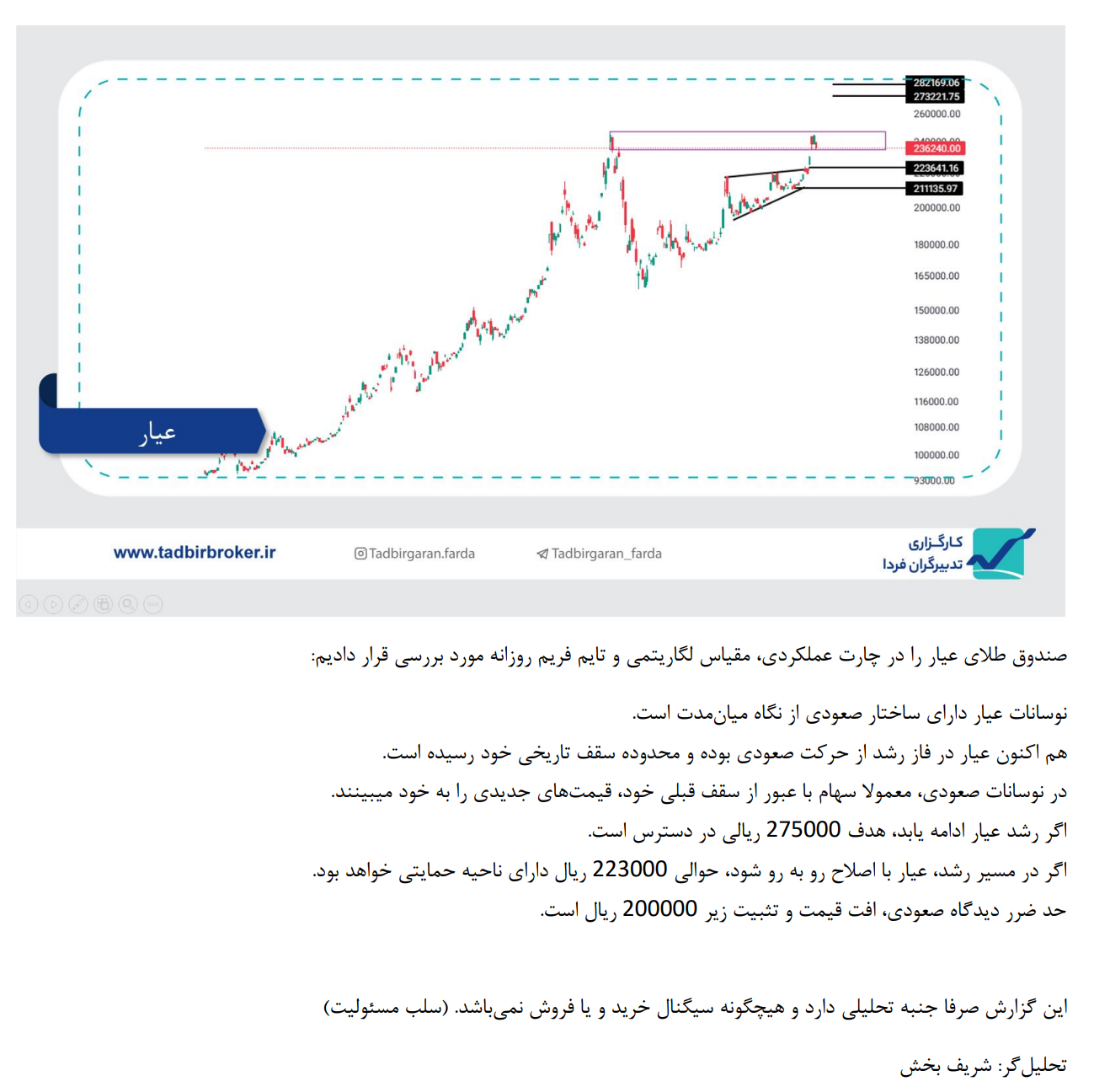 در این گزارش نوسانات قیمت نماد عیار از نگاه تحلیل تکنیکال مورد بررسی قرار گرفت و حمایت‌ها و مقاومت‌های پیش روی سهم مطرح گردید...